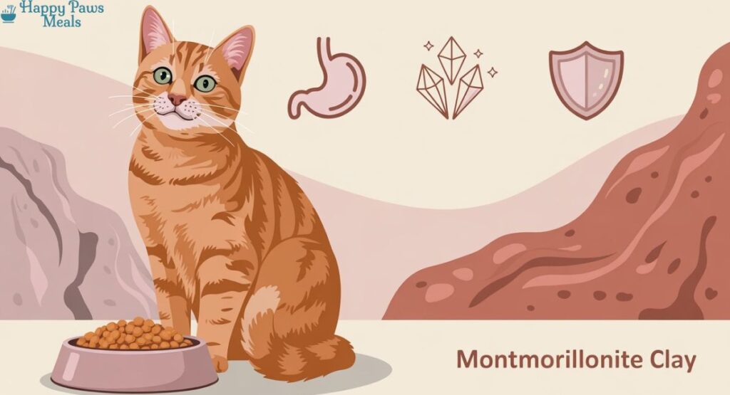 Montmorillonite clay helps absorb excess water in the gut, which can reduce diarrhea and improve stool consistency. Cats with sensitive stomachs or digestive upsets often benefit from diets containing this ingredient.